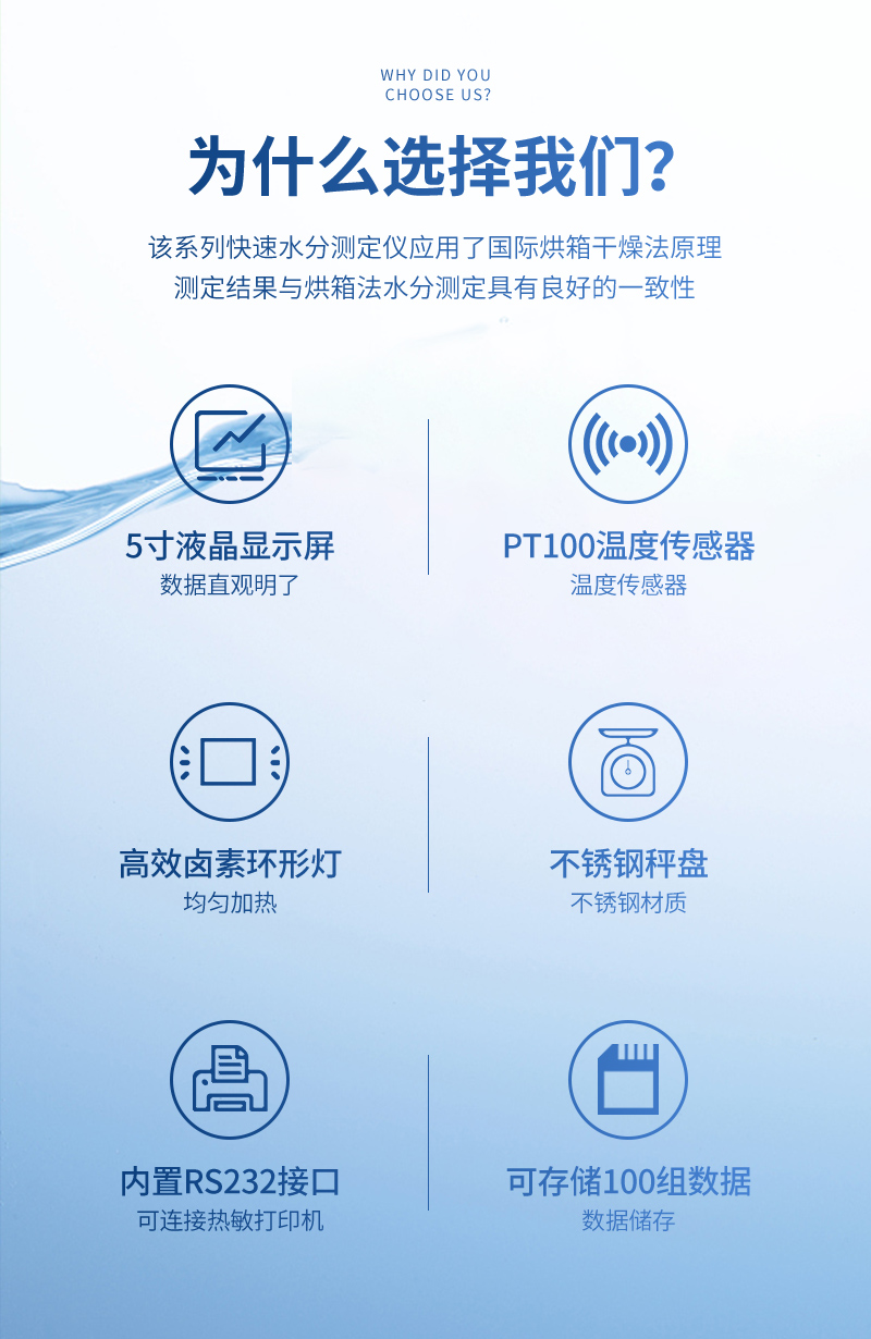 7、用途非常廣泛、幾乎適用各行業(yè)的水分測(cè)定;