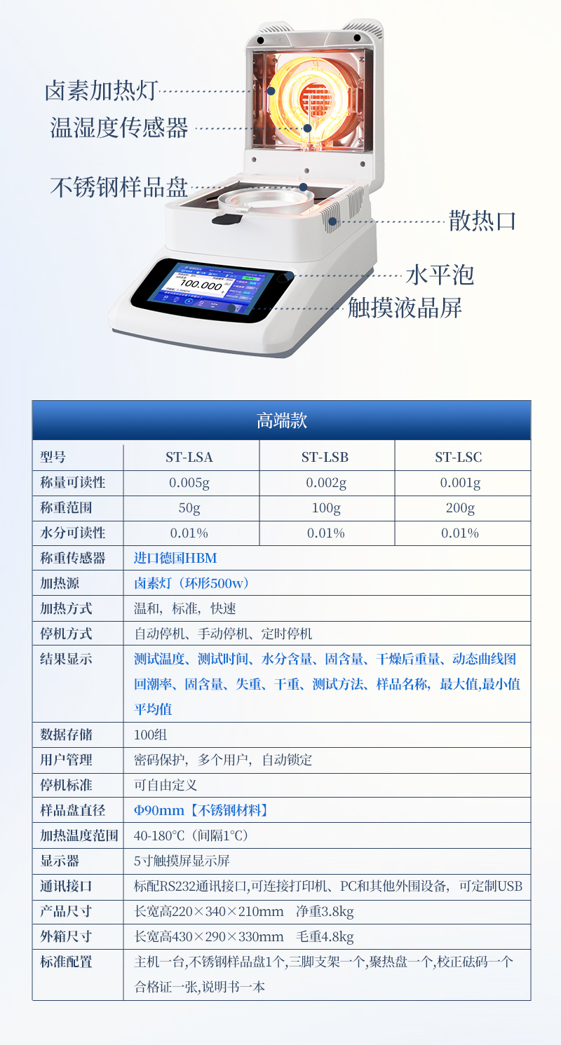 該系列快速水分測(cè)定儀應(yīng)用了國(guó)際烘箱干燥法原理,測(cè)定結(jié)果與烘箱法水分測(cè)定具有良好的一致性,工作效率卻遠(yuǎn)遠(yuǎn)高于烘箱法水分測(cè)定,一般樣品只需要幾分鐘即可測(cè)量完畢,因此受到廣大用戶的青睞與好評(píng)。