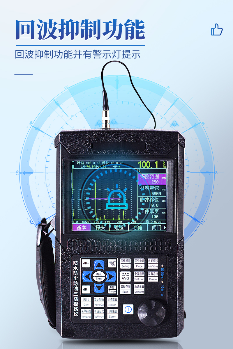 ● 真正的三防設(shè)計(jì),可以保障用戶在復(fù)雜的現(xiàn)場(chǎng)和野外不受雨水、油污、粉塵等的侵蝕,讓探傷儀的使用壽命大大延長(zhǎng)
